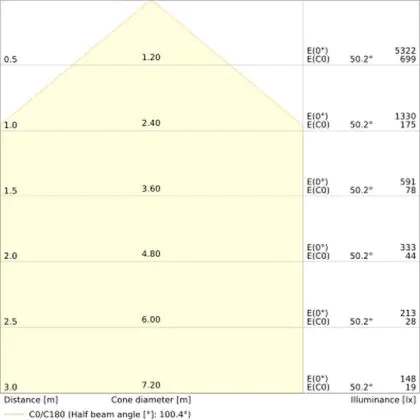 Der Abstrahlwinkel bezeichnet den Winkel, in dem das Licht aus der Lichtquelle ausgestrahlt wird. Er wird in Grad (D) angegeben. Je geringer die Gradzahl des Abstrahlwinkels ist, desto kleiner ist auch der Durchmesser des Lichtkegels, den die Lichtquelle produziert.