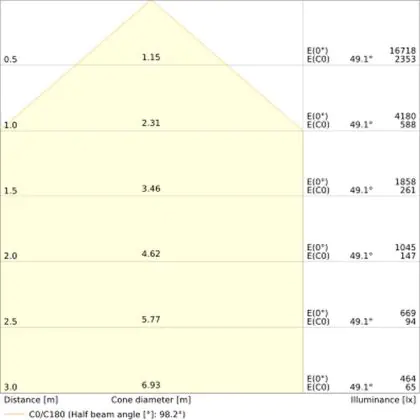 Der Abstrahlwinkel bezeichnet den Winkel, in dem das Licht aus der Lichtquelle ausgestrahlt wird. Er wird in Grad (D) angegeben. Je geringer die Gradzahl des Abstrahlwinkels ist, desto kleiner ist auch der Durchmesser des Lichtkegels, den die Lichtquelle produziert.