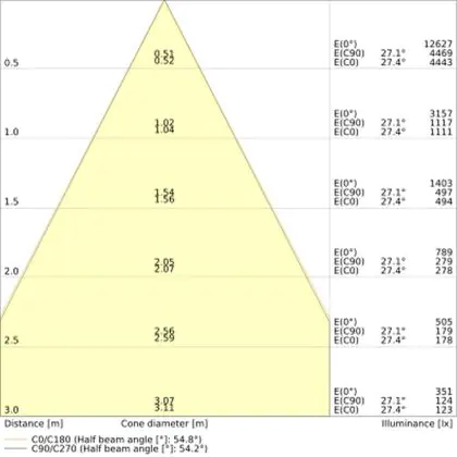 Der Abstrahlwinkel bezeichnet den Winkel, in dem das Licht aus der Lichtquelle ausgestrahlt wird. Er wird in Grad (D) angegeben. Je geringer die Gradzahl des Abstrahlwinkels ist, desto kleiner ist auch der Durchmesser des Lichtkegels, den die Lichtquelle produziert.