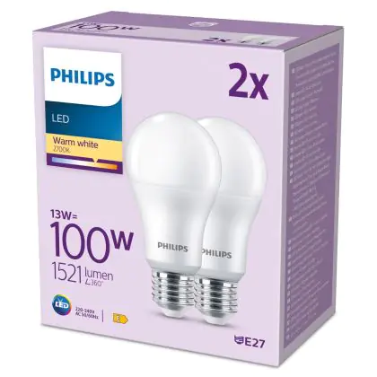Mehrfachpackung 2x Philips Glühbirne LED E27 Birne Matt 13W 1521lm - 827