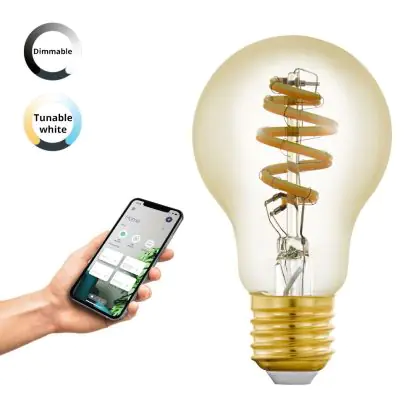 Cette ampoule Eglo Connect.Z Smart LED Poire E27 Filament Ambre 4.9W 360lm - 827-865 Accordable Blanc | Dimmable - Remplacement 25W avec son efficacité lumineuse de lumen par watt vous permettra de profiter d’un éclairage de qualité. Avec sa durée de vie de 25000 heures, vous n’aurez pas à vous soucier de son remplacement avant quelques années.