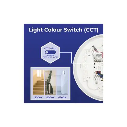 2. CCT : Vous choisissez parmi 2 ou 3 couleurs définies à l'aide d'un interrupteur, comme le blanc chaud ou le blanc froid.