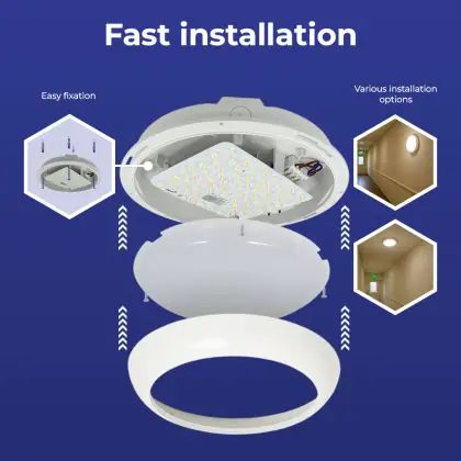Le Hublot LED Pro V2 Blanc 12/16/20W 2400lm - 830-840-865 CCT | 325mm - IP65 - Détresse 3H peut très bien être appliqué au mur qu’au plafond. Ce hublot est un luminaire étanche principalement installé dans les lieux de passages. Avec sa technologie LED Intégré, le hublot Budgetlight à un faible impact sur l’environnement et à une durée de vie pouvant tenir jusqu’à 100000 heures. Ce hublot peut également être installé en extérieur et est capable de supporter des températures extrêmes.  Il offre une couleur de lumière de et un flux lumineux de 2400 Lm.