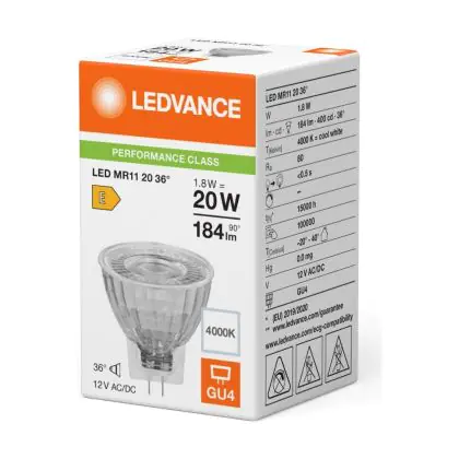 Description Ledvance LED MR11 Gu4 Réflecteur 1.8W 184lm 36D - 840 | Remplacement 20W