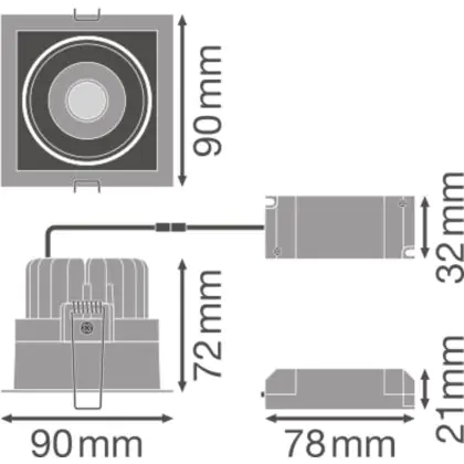 Description Ledvance Spot encastrable LED Performance Noir 8W 650lm 40D - 830 | 90x83mm