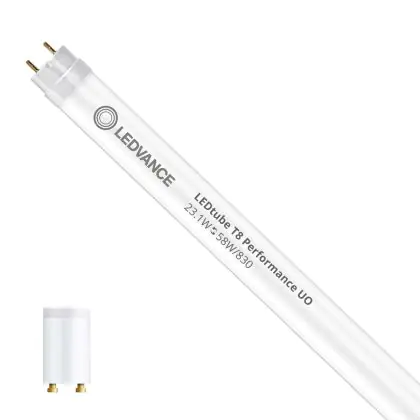 Ce tube LED Ledvance tube LED 150cm | 3000K 23.1W - Performance UO est l’un des produits les plus éconergétiques en remplacement des tubes T8 classiques. Avec ce tube LED vous êtes donc assuré de sa qualité. Avec une puissance de seulement 23.1 W, ce tube LED a la même intensité lumineuse qu’un tube classique qui consomme 58 W. P>