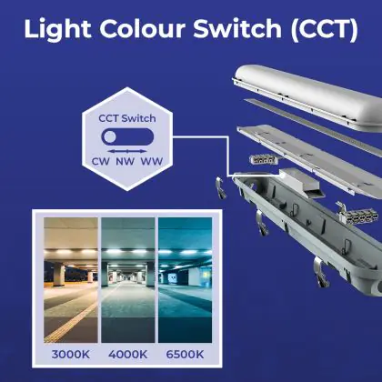 2. CCT : Vous choisissez parmi 2 ou 3 couleurs définies à l'aide d'un interrupteur, comme le blanc chaud ou le blanc froid.
