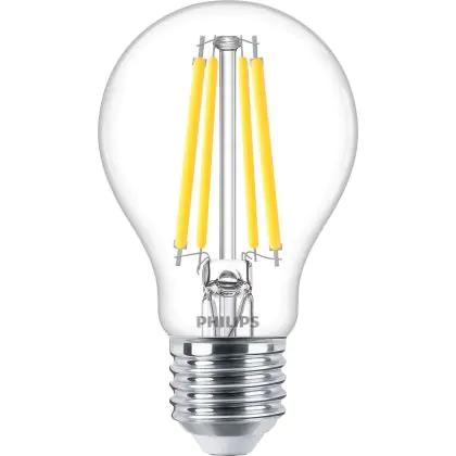 Cette ampoule Philips MASTER Value LED Ampoule E27 Poire Claire 7.8W 1055lm - 927 Blanc Très Chaud | Meilleur rendu des couleurs - Dimmable - Équivalent 75W avec son efficacité lumineuse de lumen par watt vous permettra de profiter d’un éclairage de qualité. Avec sa durée de vie de 15000 heures, vous n’aurez pas à vous soucier de son remplacement avant quelques années.
