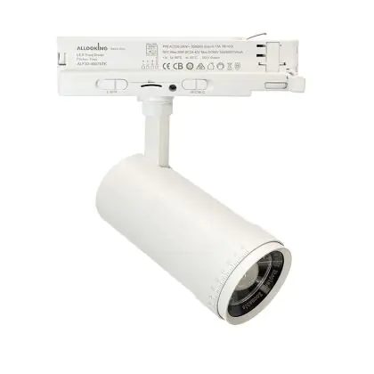 Le Spot LED Sur Rail Blanc Zoomable 30W 3000lm 15-60D - 927-930-940 CCT est luminaire d’accentuation. Plus précisément, il s’agit d’un spot LED sur rail triphasé. Ce spot Sans marque utilise la technologie LED Intégré lui permettant d’avoir une durée de vie beaucoup plus longue (50000 heures) qu’un luminaire classique. De plus, avec la technologie LED vous réaliserez des économies d’énergie importantes et donc des économies de coûts. Ce spot LED dispose d’un excellent indice de rendu des couleurs comprit entre 90-99 Ra et propose une couleur de lumière de 2700K - 3000K - 4000K CCT. Ce type d’éclairage est apprécié dans les restaurants, boutiques et les autres différents commerces.